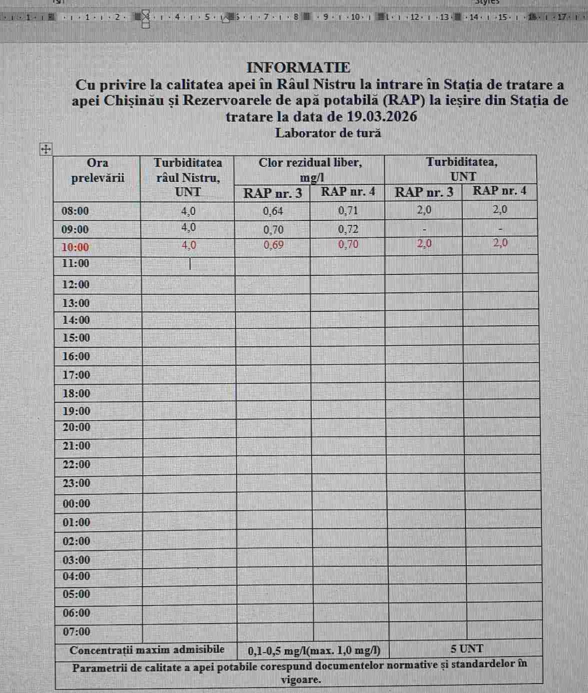 ✅La această oră, situația privind calitatea apei din râul Nistru se menține stabilă, fără niciun pericol pentru alimentarea cu apă a municipiului Chișinău.